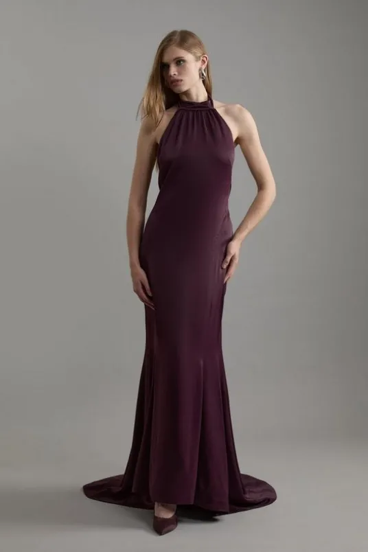 Petite Premium Satin Halter Neck Tailored Maxi Dress