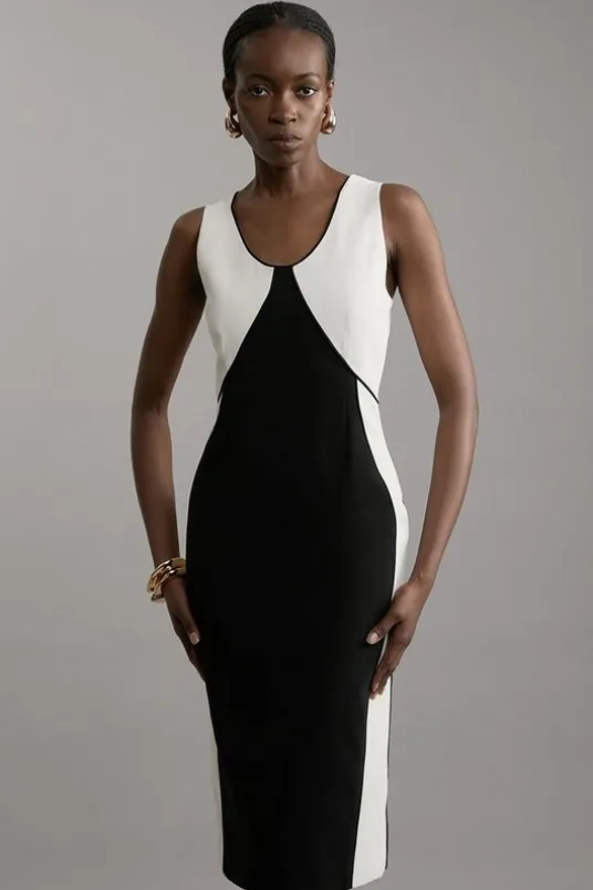 Petite Soft Tailored Color Block Tailored Sleeveless Midi Dress