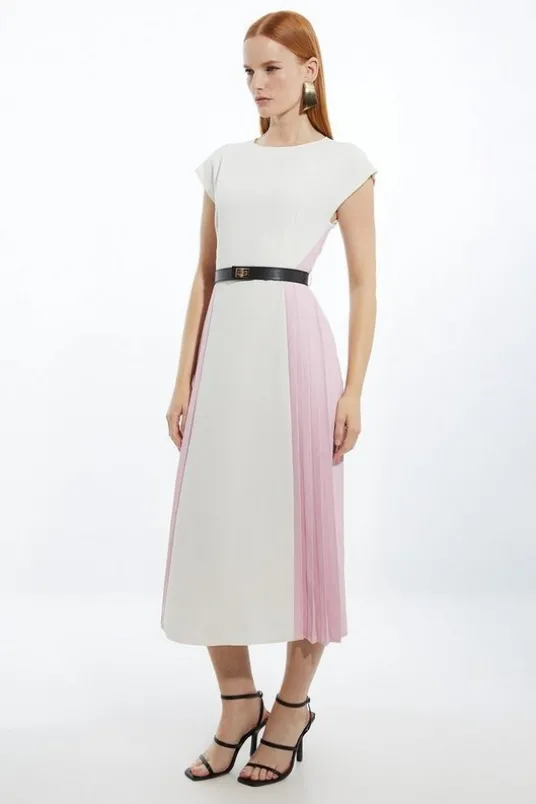 Petite Soft Tailored Contrast Pleated Panel Skirt Midi Dress