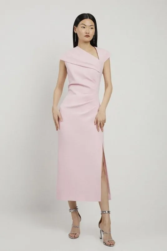 Petite Structured Crepe Asymmetric Neck Midi Dress
