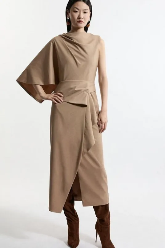 Get dressed up in our petite midi dress, which features an asymmetric design and draped detailing. Pair this piece with boots or strappy heels for an outfit perfect for office days and formal occasions.Petite Tailored Draped Asymmetric Midi DressHigh Quality, Tailored DesignUnique Draped DesignFlattering Straight SilhouetteStatement One Sleeve DesignFormal, High NecklineButton Fastening Behind NeckExpertly designed for those 5’3″ and under, our Petite pieces are perfectly proportioned for a smaller frame using shorter lengths.Details & Caremain 63% polyester, 32% viscose, 5% elastane. Model wears UK10/US6. Model wears 5″9. Length approx 127cm