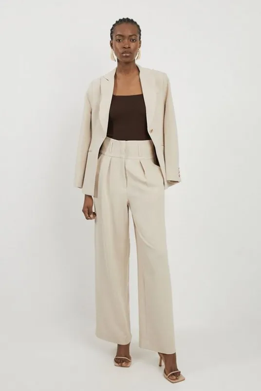 Petite Tailored High Waisted Pleated Wide Leg Pants
