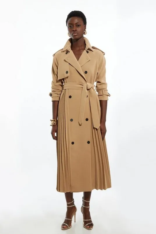 Petite Tailored Pleat Detail Belted Trench Coat