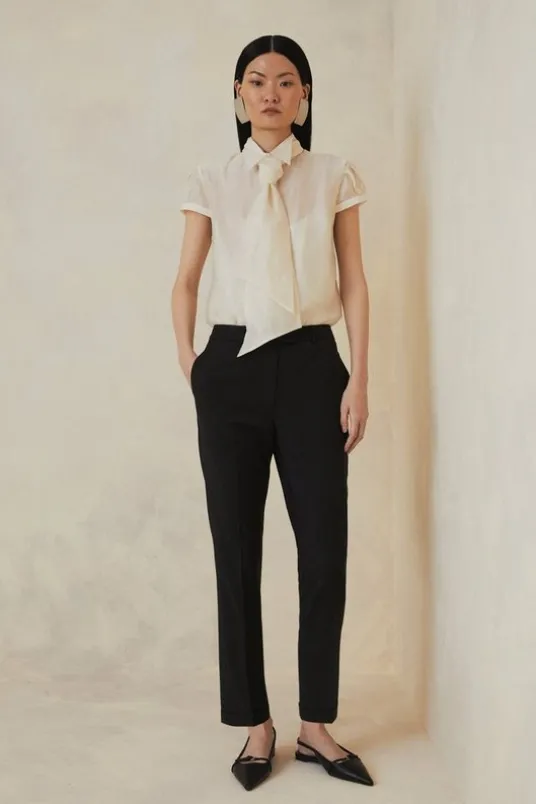 Introducing The Founder: Evolution, a third collection with our eponymous founder, Karen Millen. Welcoming in the spring season, these interchangeable staples will elevate the everyday with minimal effort.Whether for work or weekend, these tailored wool blend trousers are the perfect addition to your capsule wardrobe. Made from a wool blend fabric, they are both comfortable and stylish. A slim leg design creates a flattering silhouette. Style this pair with a blouse and blazer for a professional office outfit, or with heels and a sheer top for an evening look.Expertly designed for those 5’3″ and under, our Petite pieces are perfectly proportioned for a smaller frame using shorter lengths.Details & CareMain: 70% Polyester 30% Wool. Lining: 93% Polyester 7% Elastane/Spandex. Dry clean only. Item length 86cm
