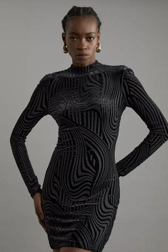 Petite Velvet Devore Jersey Cut Out Mini Dress
