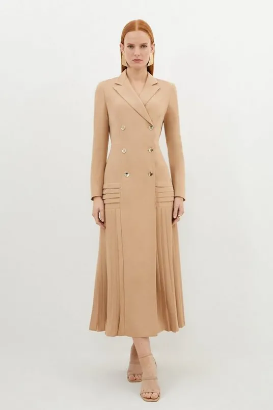 Exude sleek sophistication in this military inspired mdii dress, featuring a double breasted design, notched collar and long sleeves for a classic touch, while aflowing full skirt falls to a midi hemline. This piece is elegance reinstated, pair with knee high leather boots.Double breastedLong sleeveMidi dressCollarDetails & CareShell: 72% Polyester 28% Polyester. Lining: 100% Polyester. Dry clean only. Model Height 5”10 – Model wears a UK 8/US Size 6. Centre back length of a 8: 136cm
