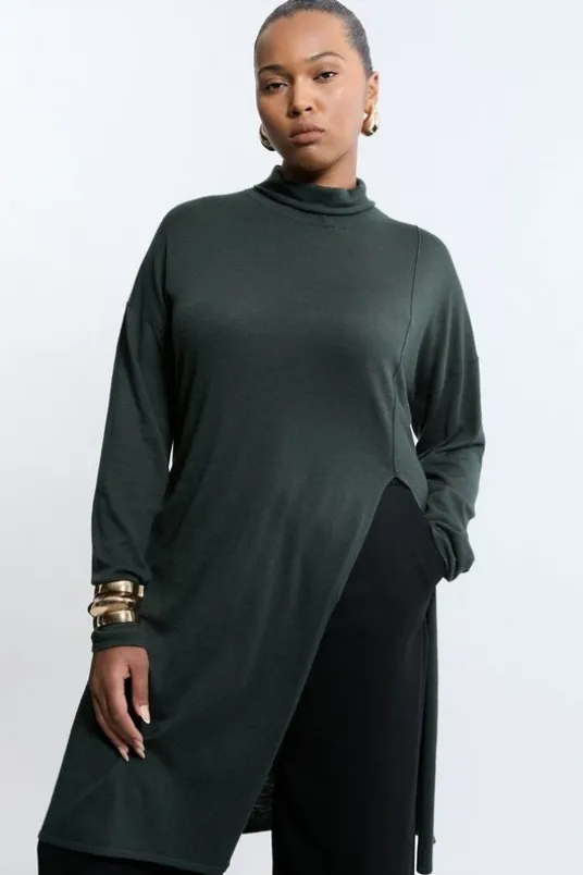 Plus Size Cashmere Blend Deep Slip Longline Knit Top