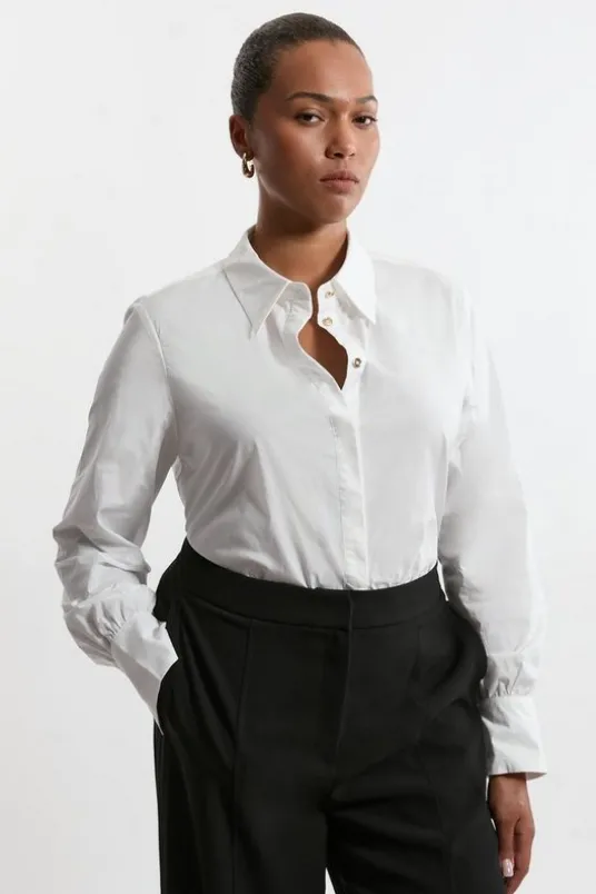 Feel elevated in our classic, plus size button up shirt, featuring a relaxed fit, and button detailing down the front. This piece can be easily paired with anything from tailored trousers to denim jeans for looks that go from office days to drinks receptions.Plus Size Cotton Button Sleeve Detail Woven ShirtHigh Quality Cotton FabricFlattering Relaxed Fit Classic, Collared Neckline Metallic Button DetailingButton Front FasteningDetails & Care60% Cotton 37% Nylon 3% Elastane. Gentle machine wash at 30 with similar colours. Model Height 5”10 – Model wears a UK 10/US Size 6.