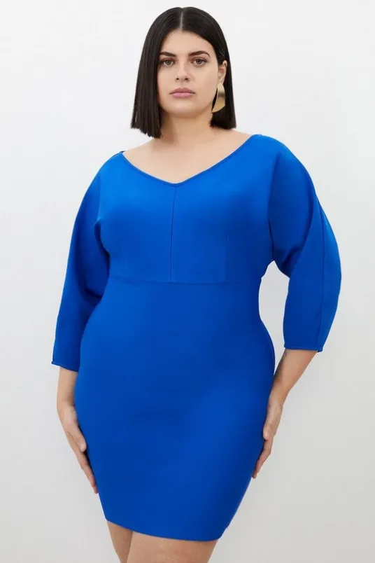 Feel formal in our plus size mini dress, with a figure hugging fit that flaunts the curves, contrasted be relaxed fitting banana sleeves. Styles well with strappy heels for a statement occasion look, perfect for party nights and special occasions.Plus Size Figure Form Bandage Banana Sleeve Mini DressUnique Banana SleevesWide V NecklineFigure Hugging SilhouetteThree Quarter Length SleevesZip Fastenings in BackExpertly designed for those UK size 18/US size 14 and above, our plus size clothing collection is perfectly proportioned to ensure you look stylish at every shape.Details & Care97% Polyester. 3% Elastane. Wash on synthetic cycle. Model wears UK Plus XL. centre back length approx 88cm.