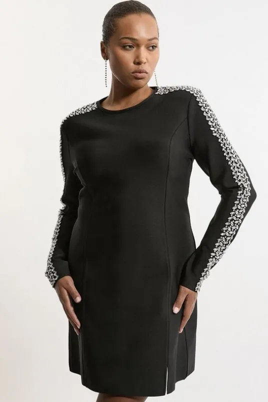Plus Size Figure Form Bandage Knit Embellished Mini Dress