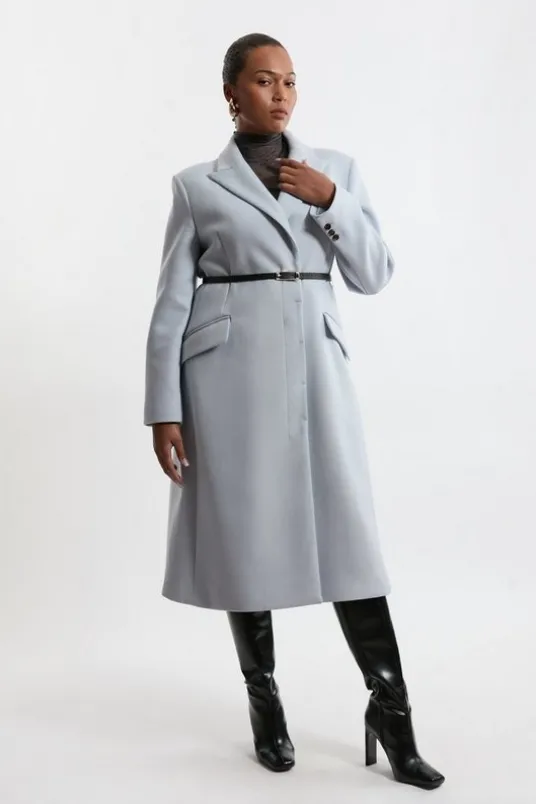 Plus Size Premium Italian Manteco Wool Single Breasted Belted Tailored Maxi Coat