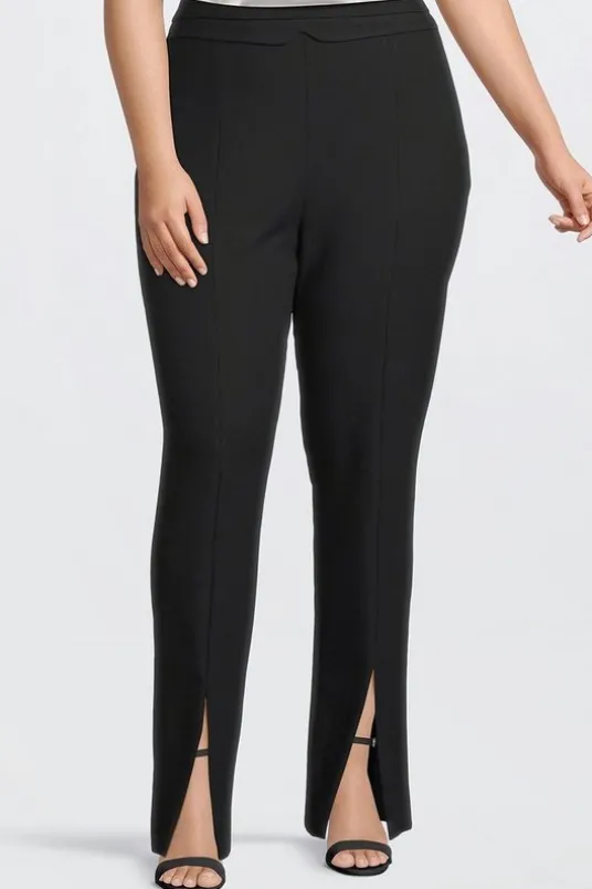Plus Size Tailored Compact Stretch Split Hem Straight Pants