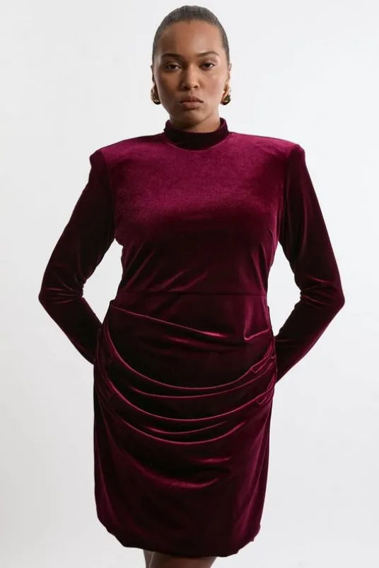 Plus Size Tailored Velvet High Neck Mini Dress