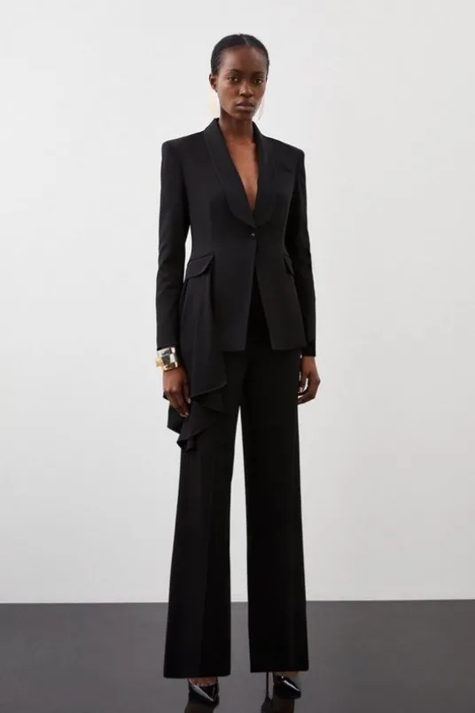 Polished Viscose Drape Side Single Breasted Tailored Jacket & Trouser Set