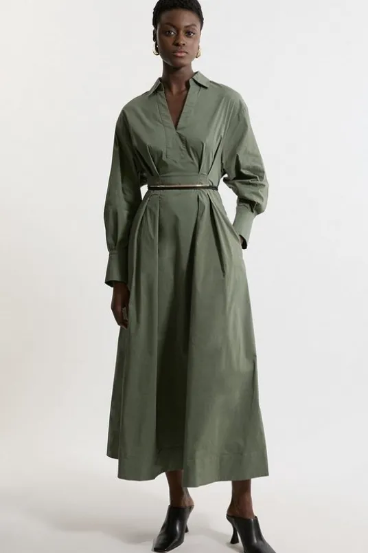 Feel confident in our shirt dress, with a shirt style design featuring a formal collar, and a long, flowing skirt. Style it with block heels or ankle boots for a look perfect for office days, then wear it with heeled boots or strappy heels for an evening look.Poplin Balloon Sleeve Woven Shirt DressFlattering Fit and Flare SilhouetteClassic Shirt DesignFormal Collar Detailing V Neckline Cinched WaistlineUnique Balloon SleevesDetails & Care65% Cotton. 35% Polyester. Wash inside out. Model wears UK Size 10. Length 135cm