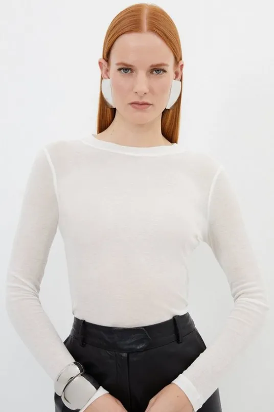A staple piece for cooler seasons, this long sleeve top is crafted from premium soft wool with a round neck and a sculpted fit. Wear as a foundation layer or pair with leather pants and a tailored blazer for workwear.WoolRound neckLong sleevesDetails & Care80% Lyocell 20% Wool. Cool hand wash separately. Model Height 5”10 -Model wears a S.
