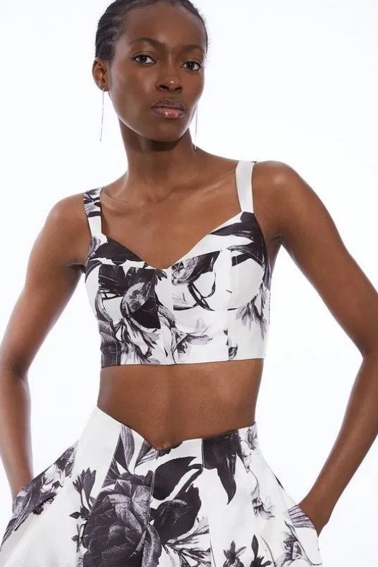 Experience seamless co-ordination in our corset top, with a fitted silhouette, a fun rose print, and a cropped corset style. Style it with the matching skirt for a two piece outfit perfect for wedding guest days and occasion nights, then style with some tailored wide leg trousers for a more casual approach.Rose Twill Corset TopHigh Quality Twill FabricStatement Rose PrintFigure Hugging FitComfortable, Wide Shoulder StrapsAdjustable StrapsComfortable Shirred BackZip Back FasteningMatching Skirt Sold SeparatelyDetails & Care100% Polyester. Wash dark colours separately. Iron on reverse.