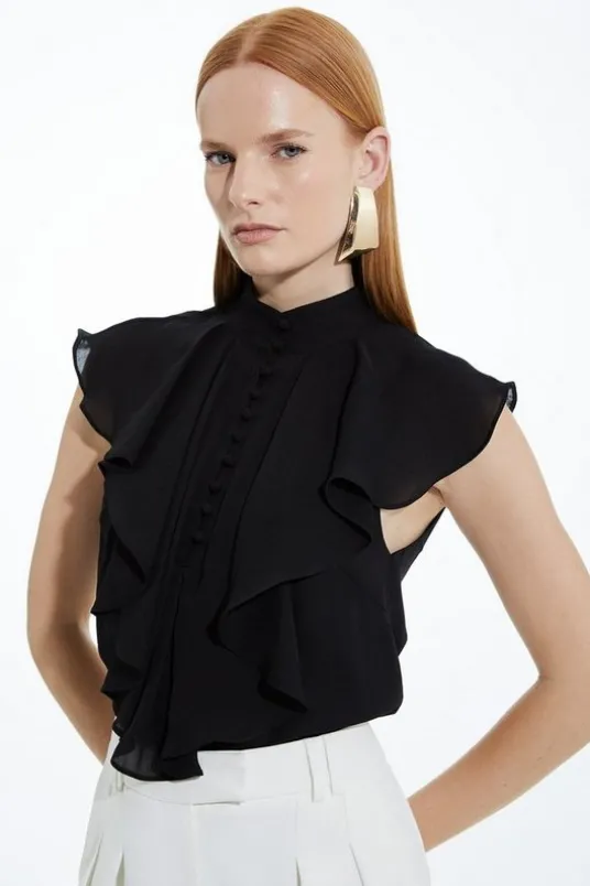 Ruffle High Neck Georgette Sleeveless Woven Blouse