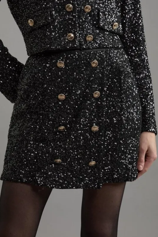 Sequin Tailored Wrap Over Mini Skirt