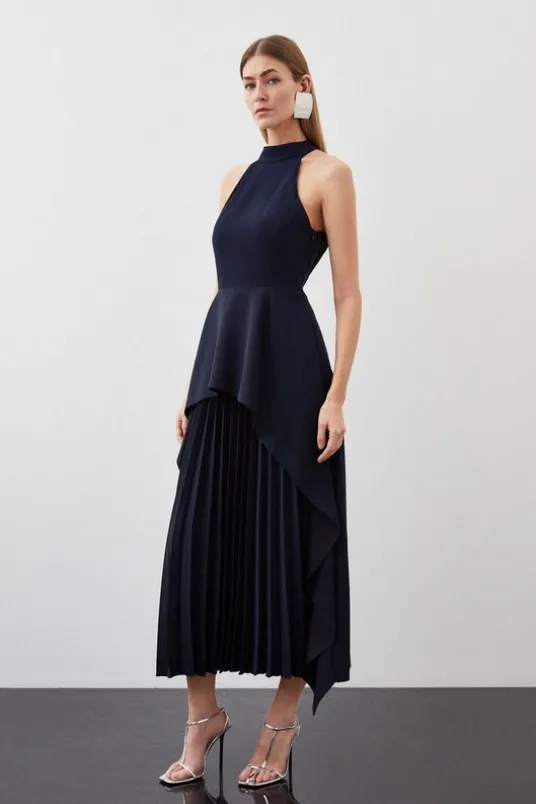 Display a penchant for statement dressing in this soft tailored midi dress. A waterfall hemline is updated with a pleated design, adding contemporary appeal to this piece. A high neckline gives a sophisticated feel, while a sleeveless design lends this dress to summer occasions.High necklinePleated skirtWaterfall hemlineSleeveless designDetails & CareMain: 72% Polyester, 28% Polyester. Lining: 100% Polyester. Dry Clean Only.Model wears UK size 8/ US size 4. Model height Approx: 5″9. Length Approx: 135cm