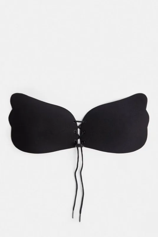 Dare to bare with our stick-on bra. With an lace up design that supports, as well as strong self-adhesive tabs, our stick on bra is backless and strapless, so can be worn with any bandeau dress or backless number. Stick On Lace Front BraSupportive, Lace Up DesignSecure Sticky Tabs on SidesBackless DesignNo StrapsDetails & CareEnsure skin is clean and dry and free from any lotions or oils and no broken skin or sensitivity.Loosen the strings and position the adhesive part of the cups onto breasts at distance apart to give the cleavage enhancement desired when pulled together, press firmly to the bodyIt is recommend to not wear for longer than 8 hours at a time.Should wearing cause any irritation please stop use immediately.After wear, use a sponge with light detergent to clean and ready for your next wear.Replace the plastic strips to protect from dirt & dust when not in use.