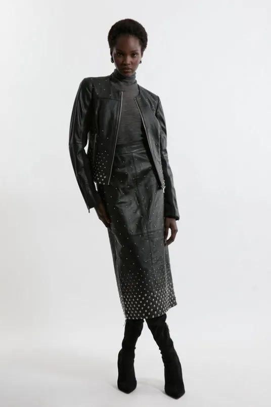 Be the first to review “Studded Leather Pencil Skirt” Cancel reply