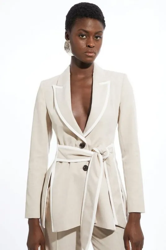 Tailored Belted Tipped Detail Blazer