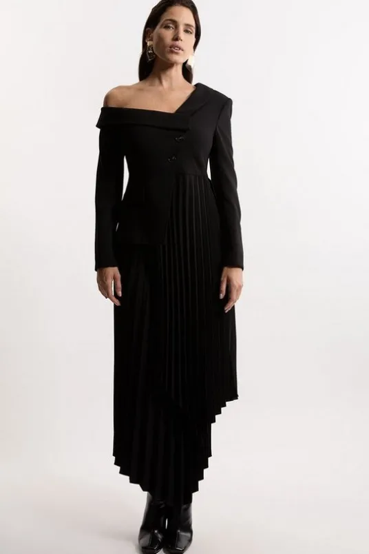Tailored Crepe Asymmetric Pleated Midi Dress