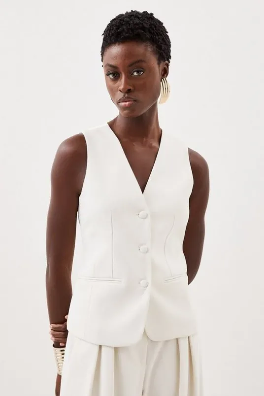 CLOTHINGextra 20% off | use code: WINTER20SALE35% off*CYBER DEALSCrafted with contemporary elegance, this piece fits seamlessly into the modern woman’s closet. Taking inspiration from traditional suit attire, this vest exudes a directional aesthetic with a single breasted design. Style this sophisticated piece as a separate or alongside a two piece setinating blazer and tailored pants.TwillWaistcoat designFront buttonsV-necklineDetails & CareMain: 69% Polyester 29% Viscose/Rayon 2% Elastane/Spandex. Excluding trims. Lining: 100% Polyester. Dry clean only. Model wears UK Size 8/ US Size 4. Model height approx: 5″9. Length approx: 55cm