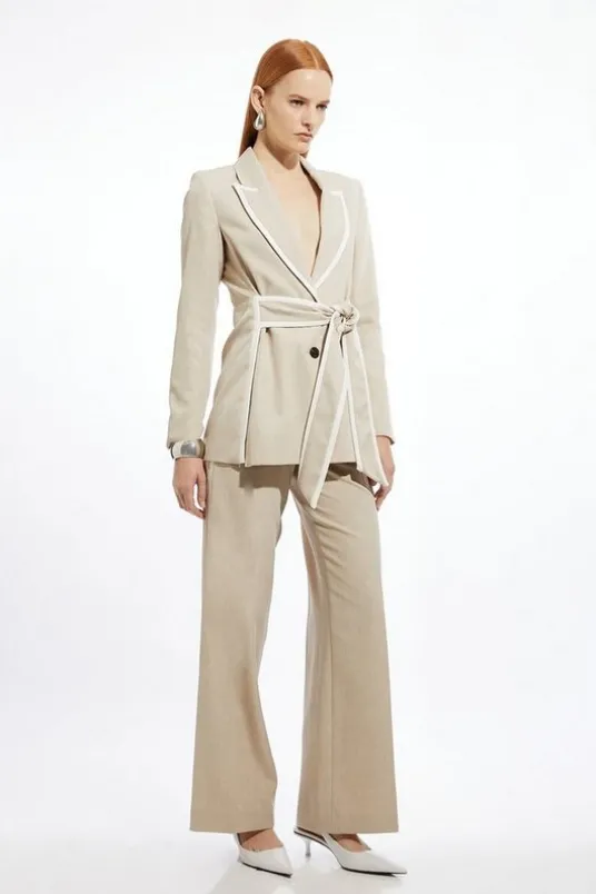 Sale New InSale Under $172Sale PantsSALECLOTHINGSale WorkwearCYBER DEALSWith a fit that flatters the curves, these trousers are certain to turn heads. Contrasting tipped detailing adorns the whole piece, and the high waistline and straight leg fit make for a universally flattering fit. Style this piece with the matching blazer or a T-shirt and strappy heels for an occasion look perfect for parties and evenings out.Straight Leg Tipped Tailored TrousersComfortable, High WaistlineUnique, Tipped DetailingFlattering, Straight Leg FitButton Front FasteningPocket DetailingMatching Blazer Sold SeparatelyDetails & CareMain: 47% Polyester 47% Viscose/Rayon 6% Elastane/Spandex. Excluding trims. Lining: 100% Polyester. Dry clean only. Item length 74cm