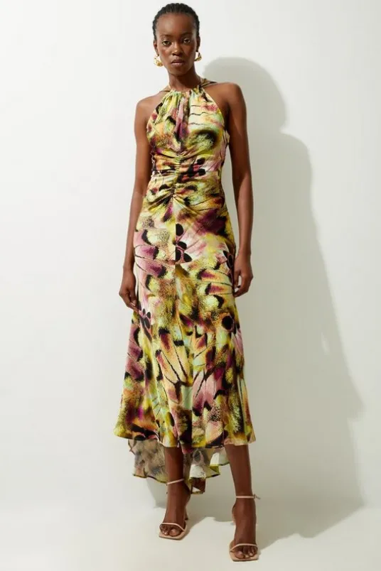 Turn heads no matter the destination in our tall maxi dress, with a fit and flare silhouette, an open, strappy back, and a statement abstract print. Style it with strappy heels for an occasion look that is guaranteed to turn heads from wedding guest days to holiday evenings.Tall Abstract Print Viscose Woven Halter Tie Maxi DressUnique High Low HemlineStatement Abstract PrintStrappy Back DesignFlattering Ruched WaistHalter NecklineFit and Flare SilhouetteTie Back FasteningExpertly designed for those 5’10” and above, our Tall pieces are perfectly proportioned for a taller frame using longer lengths.Details & Care100% polyester. Gentle machine wash at 30 with similar colours.