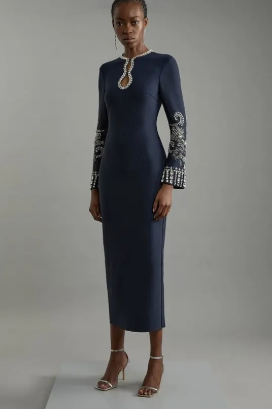 Tall Figure Form Bandage Knit Embellished Wide Sleeve Midaxi Dress