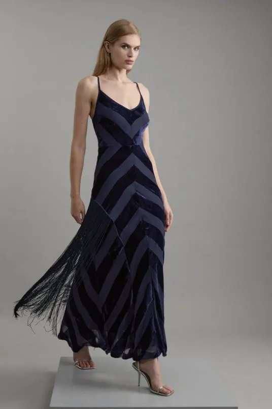 Tall Fringed Velvet Devore Woven Maxi Dress
