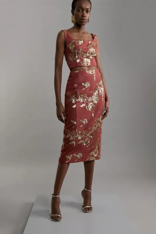 Emanate evening elegance in a tall co-ord set, the skirt of which features smooth, satin fabric, with a fit that hugs the curves, and an embroidered floral design perfect for styling all summer long. Style it simply with the matching top and strappy sandals or heels for a look that will take you from wedding guest days to date nights to holiday evenings.Tall Satin Sequin And Embroidery Woven Pencil SkirtHigh Quality, Smooth Satin FabricFlattering Fitted SilhouetteEmbroidered and Sequin Floral DetailingComfortable High WaistlineZip Back FasteningMatching Top Sold Separately Expertly designed for those 5’10” and above, our Tall pieces are perfectly proportioned for a taller frame using longer lengths.Details & CareMain: 100% Polyester. Lining: 100% Polyester. Trim: Sequin. Dry clean only. Model wears UK Size 10.