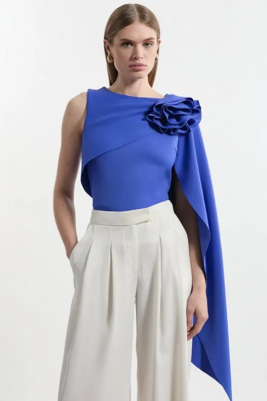 Prepare for admirable glances with this standout tall fit top. With a figure-hugging fit and dramatic rosette detail paired with ethereal draping, this top is set to make a statement. Style with tailored trousers and strappy stilettos for an after-dark look.Tall Scuba Drama Ruffle Rosette Top High Quality Scuba Fabric Statement Rosette Detailing at ShoulderFlattering Figure Skimming SilhouetteDramatic Draped DesignExpertly designed for those 5’10” and above, our Tall pieces are perfectly proportioned for a taller frame using longer lengths.Details & CareMain: 60% Polyamide. 22% Polyester. 18% Elastane/Spandex. Lining: 90% Polyester. 10% Elastane/Spandex. Wash inside out. Model wears Size UK 10.