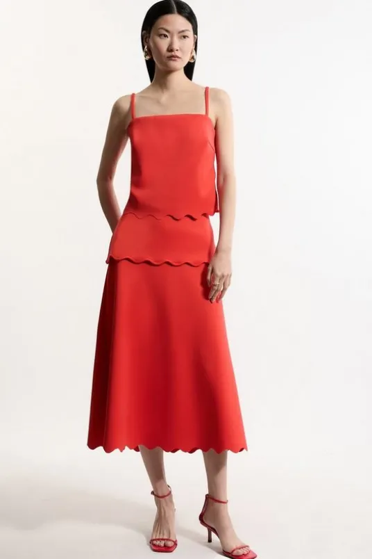 Tall Scuba Scallop Hem Woven Midi Skirt