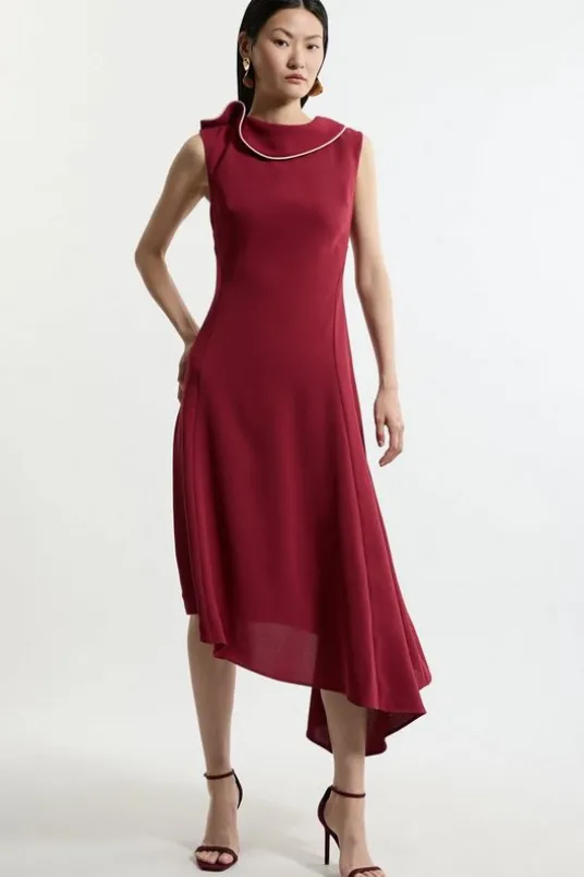 Tall Soft Tailored Tipped Fluid Asymmetric Hem Midi Dress