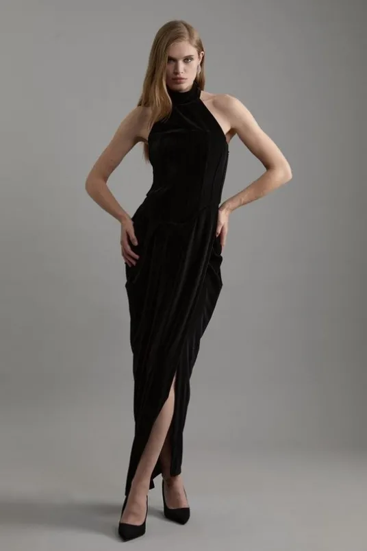 Tall Tailored Velvet Halter Neck Maxi Dress