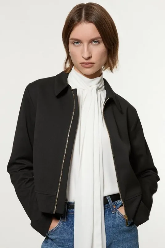 Tall Technical Crepe Tailored Metal Zip Detail Jacket