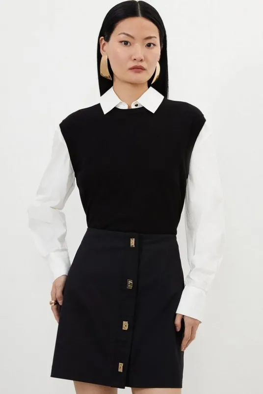 Taking inspiration from preppy style, this mini skirt features a straight design and high waist with a playful mini length. Finished with golden buttons that cascade through the front, pair with a crisp white shirt and loafers for casual workwear.Golden polished buttonsMini lengthHigh waistDetails & Care52% Cotton 44% Polyamide 4% Elastane/spandex. Gentle machine wash at 30 with similar colours. Model wears a UK 10/US Size 8. Length approx- 42cm