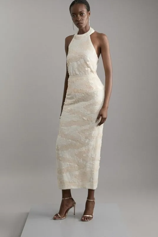 Emanate evening elegance in a co-ord set, the skirt of which features shimmering sequin fabric, with a fit that hugs the curves, and a universally flattering high waistline. Style it simply with the matching top and strappy sandals or heels for a look that will take you from wedding guest days to date nights to holiday evenings.Textured Sequin Woven Pencil SkirtSparkling, Textured Sequin FabricFlattering Fitted Silhouette Comfortable High Waistline Subtle Zig Zag Patterning Thigh High Leg Split in BackZip Back FasteningMatching Top Sold SeparatelyDetails & Care100% polyester. wash with similar colours inside out. Model wears UK Size 10/ US Size 6. Model height approx: 5″9. Length approx: 75cm