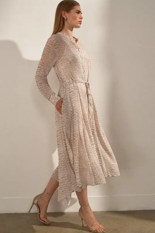 Karen Millen OBE has returned with her fourth collection, boasting 40 unique pieces designed to make a statement. With key pieces perfect for summer events, unique workwear, and elevated occasion looks, our Capsule collection is here to enrich your summer wardrobe and ensure confidence that lasts.Feel elevated in our midi dress, with a statement animal print that attracts attention everywhere you step, as well as a unique, asymmetric hemline and an ultra floaty, relaxed fit. Style this dress with strappy heels for an outfit that will turn heads from wedding guest days to upcoming occasions and events.The Founder Animal Print Viscose Georgette Woven Midi DressHigh Quality Georgette FabricComfortable, Relaxed FitFlattering Belted WaistlineUnique High Low HemlineStriking Animal PrintMidi LengthDetails & CareMain: 100% Viscose. Lining: 100% Polyester. Gentle machine wash at 30. Do not dry clean. length measures 125cm