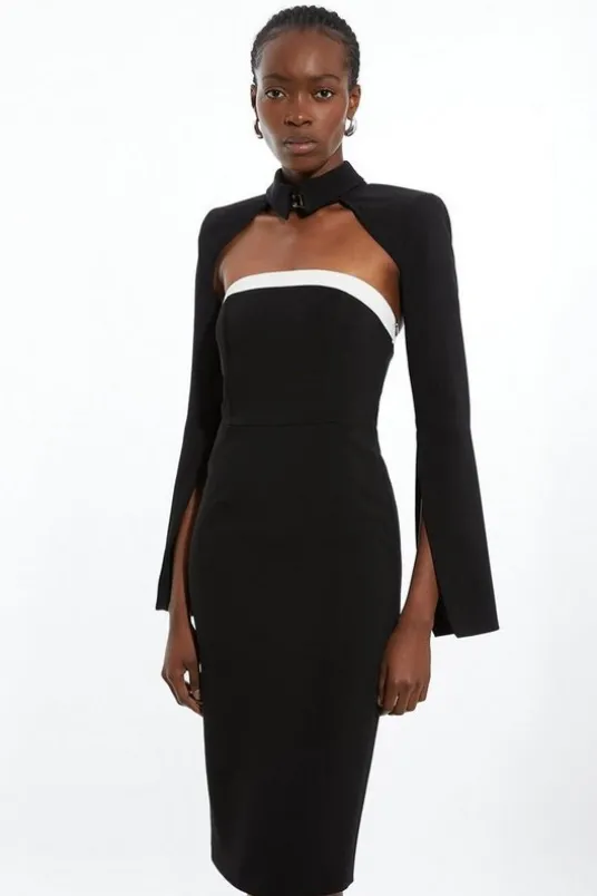 The Founder Petite Compact Stretch Viscose Tailored Contrast Detail Bandeau Midi Dress