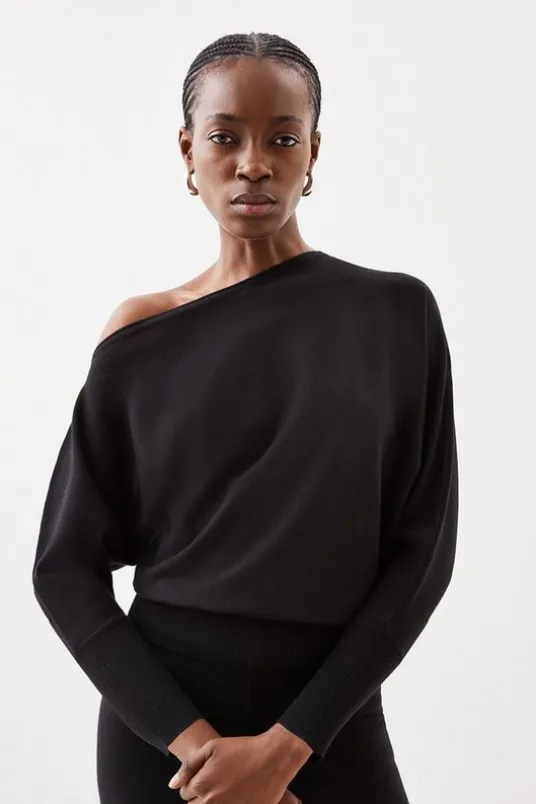 Deliver effortless sophistication in this off the shoulder top, perfect for any occasion. Crafted from a soft knit, the neckline hangs off the shoulder to show off the decolletage and the top fits in a comfortable, relaxed silhouette. It features long sleeves and is ready to be styled with weekend denim or tailored trousers for a desk to dinner look.Viscose Blend Knitted Lounge Drop Shoulder Slouchy TopSoft, Knit FabricComfortable, Relaxed FitSlouchy, Off Shoulder NecklineFlattering Off the Shoulder FinishDetails & Care49% Polyester 36% Viscose 15% Polyamide. 30 degree cotton cycle. Model wears UK Small.