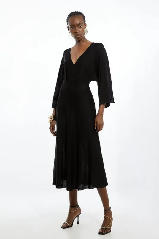 Viscose Blend Slinky Kimono Sleeve Knit Midaxi Dress