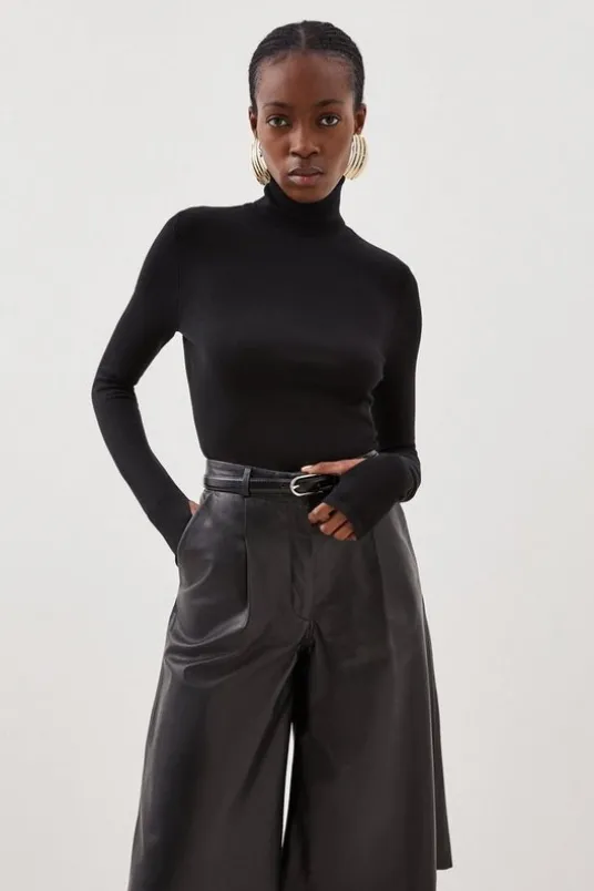 Experience elevated looks in our jumper, with a fitted silhouette, and a ribbed, knit fabric certain to keep you warm. The high, roll neckline and the thumb hole accents make it perfect for layering. Style it with tailored trousers and heeled boots for an occasion look that will take you from evenings out to office days.Viscose Blend Roll Neck Thumbhole Cuff Knit JumperHigh Quality, Soft Knit FabricFlattering Figure Hugging FitWarm, High Neckline Long Sleeve Design Unique Thumb Hole AccentsDetails & Care70% Viscose/Rayon 30% Nylon. Remove promptly from washing machine. Reshape whilst damp. Dry flat. Model wears UK size small.