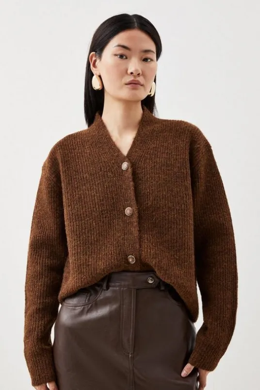 Feel elegant in our knit cardigan, with a slouchy silhouette. Style this piece with jeans or tailored trousers for an outfit that will take you from office days to wintery walks.Wool Blend Cosy Slouchy Knit CardiganHigh Quality Wool Blend FabricHigh, V NecklineComfortable, Relaxed SilhouetteButton Front FasteningsDetails & Care76% Polyester 15% Nylon 6% Wool 3% Elastane. 40 degree wool cycle. Model wears UK Small. Item length 42cm. Model height 5″9.