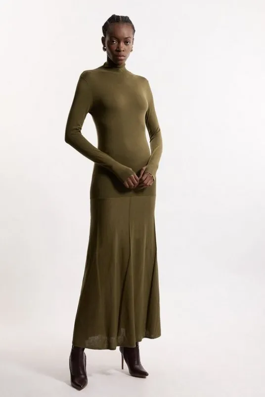 Wool Tencel Full Skirted Maxi Knit Dress